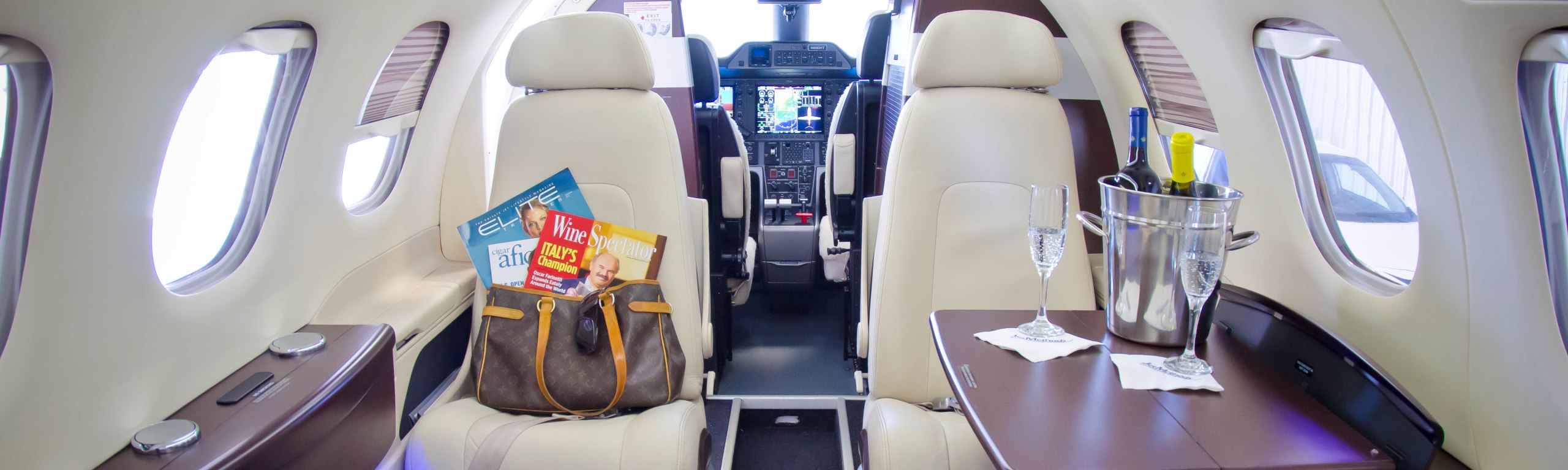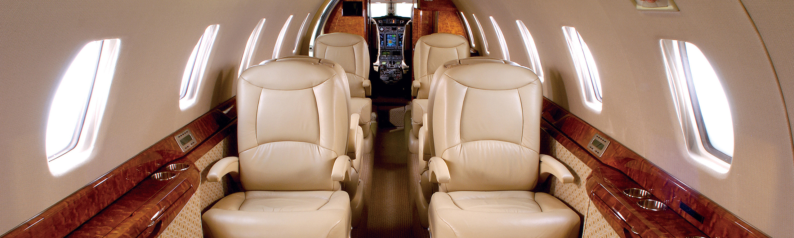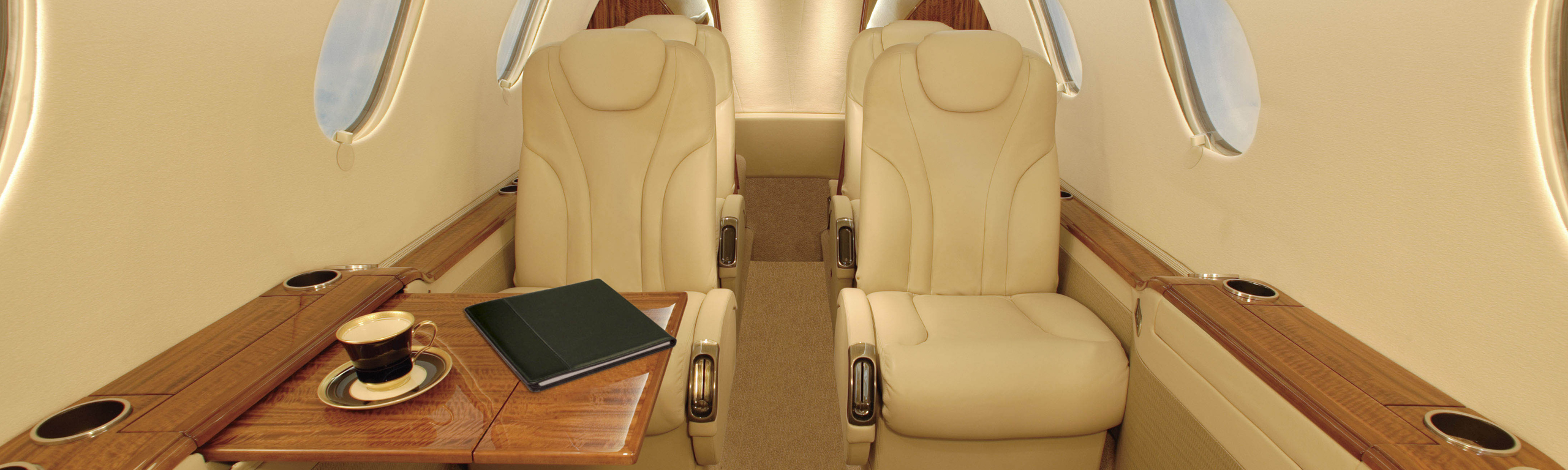Компоновка салона CJ3+ очень типична для малых джетов. На борту есть только самое необходимое для недолгого полета. В полу имеется