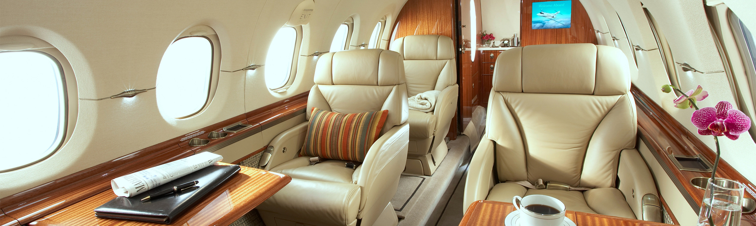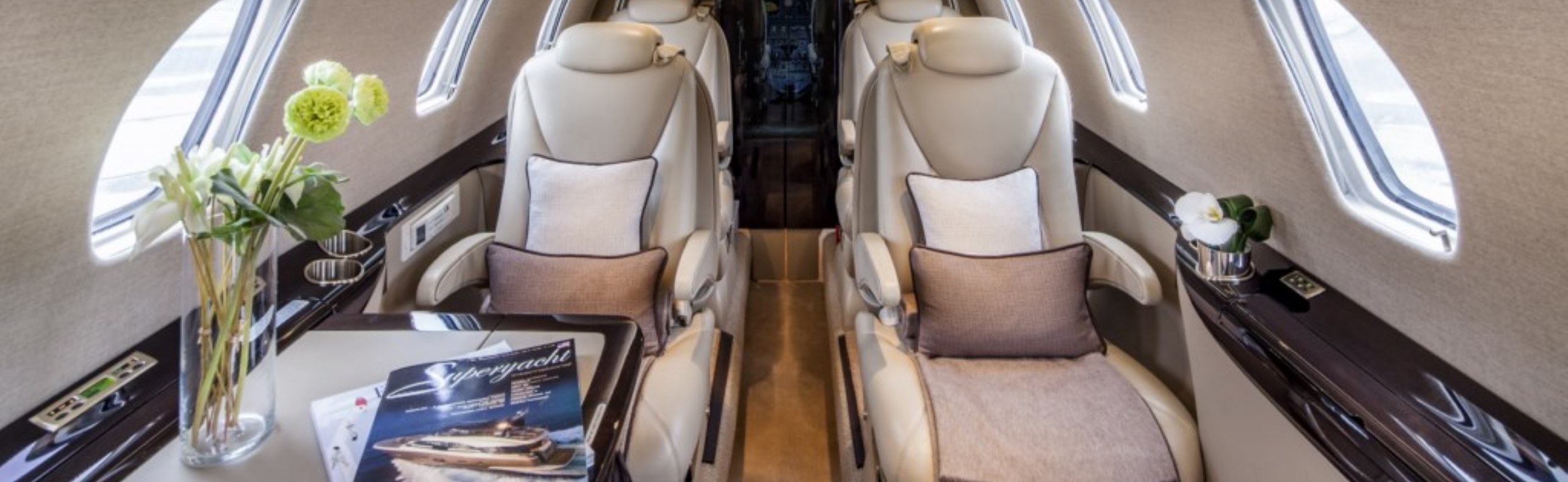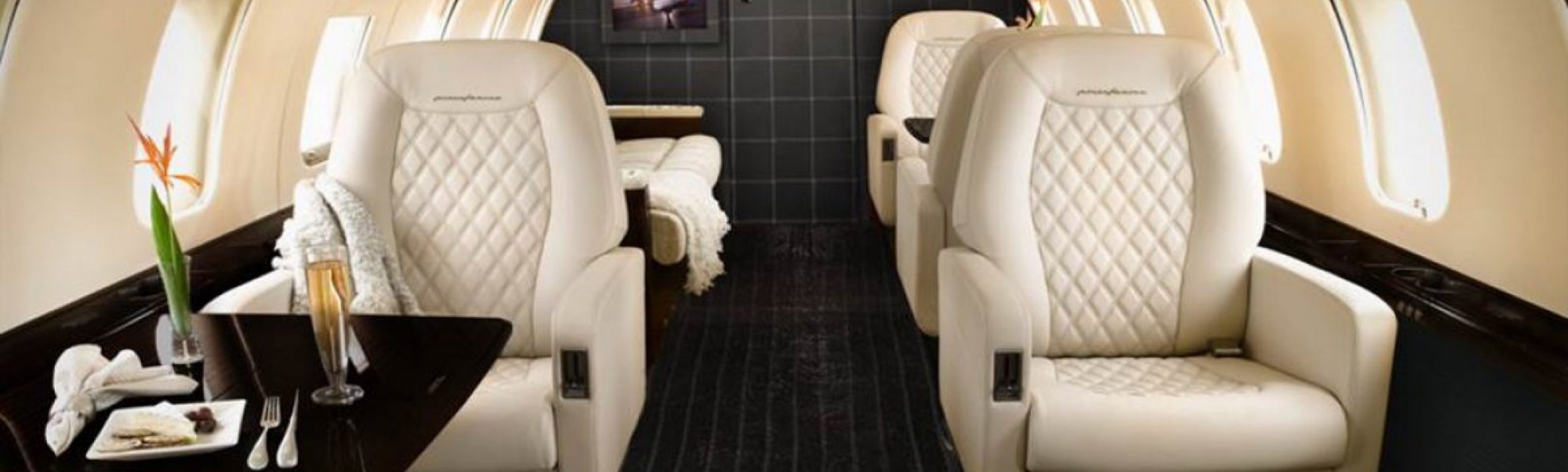 Компоновка салона CJ3+ очень типична для малых джетов. На борту есть только самое необходимое для недолгого полета. В полу имеется